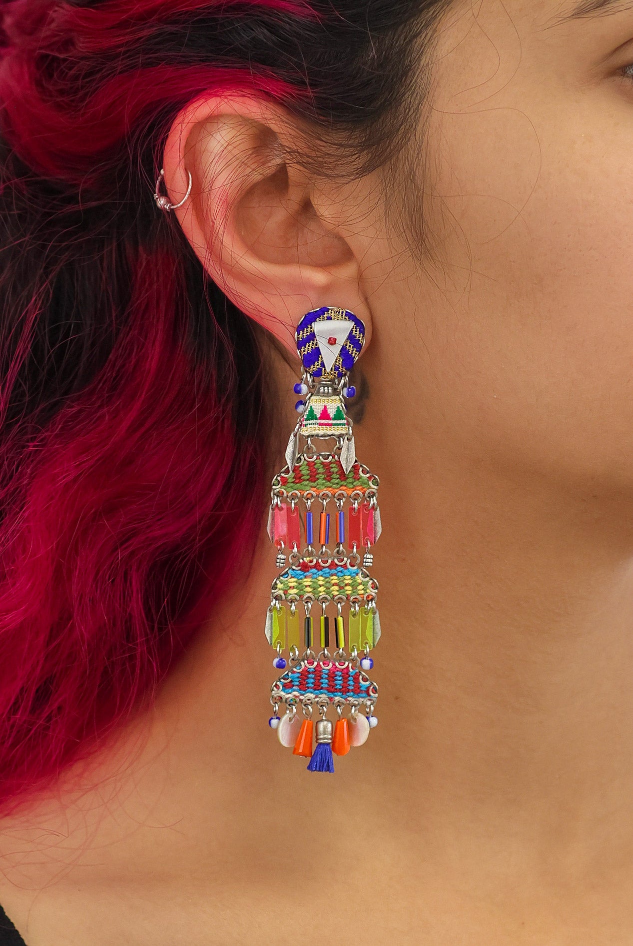 Textile plays a central role in Ayala Bar's designs. Unexpected combinations of fabric, thread, lace, tassels, and pompoms are hallmarks of her work. The artist employs techniques such as embroidery, weaving, knitting, gluing, and hand sewing, with each collection introducing new methods and fresh concepts. The fabrics feature striking prints and textures and are sourced mainly from India, the Middle East, and Morocco. One of the artist’s main uses of fabric is in bead-making, where she combines it with glass to create vibrant, uniquely crafted beads.