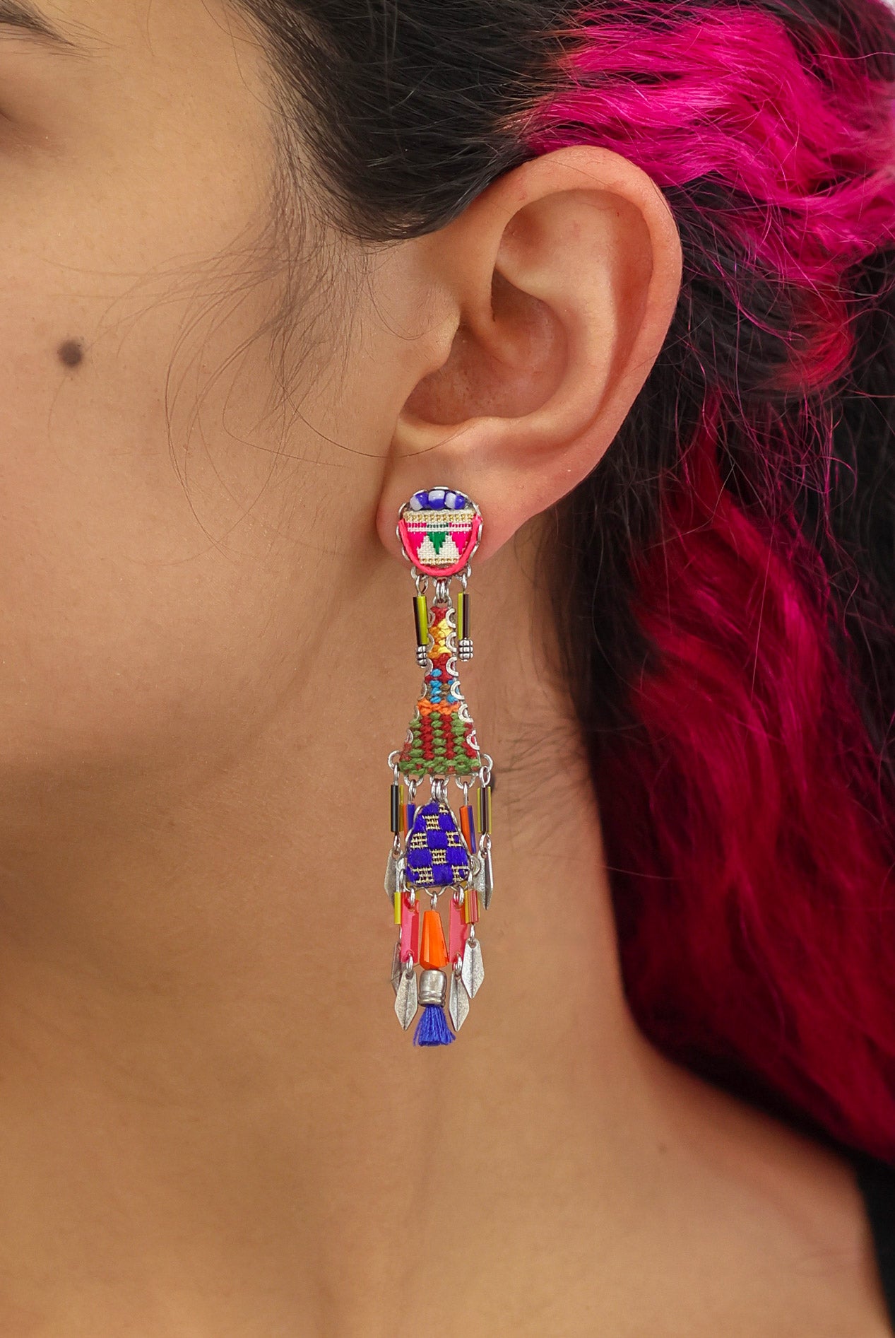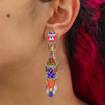 Textile plays a central role in Ayala Bar's designs. Unexpected combinations of fabric, thread, lace, tassels, and pompoms are hallmarks of her work. The artist employs techniques such as embroidery, weaving, knitting, gluing, and hand sewing, with each collection introducing new methods and fresh concepts. The fabrics feature striking prints and textures and are sourced mainly from India, the Middle East, and Morocco. One of the artist’s main uses of fabric is in bead-making, where she combines it with glass to create vibrant, uniquely crafted beads.