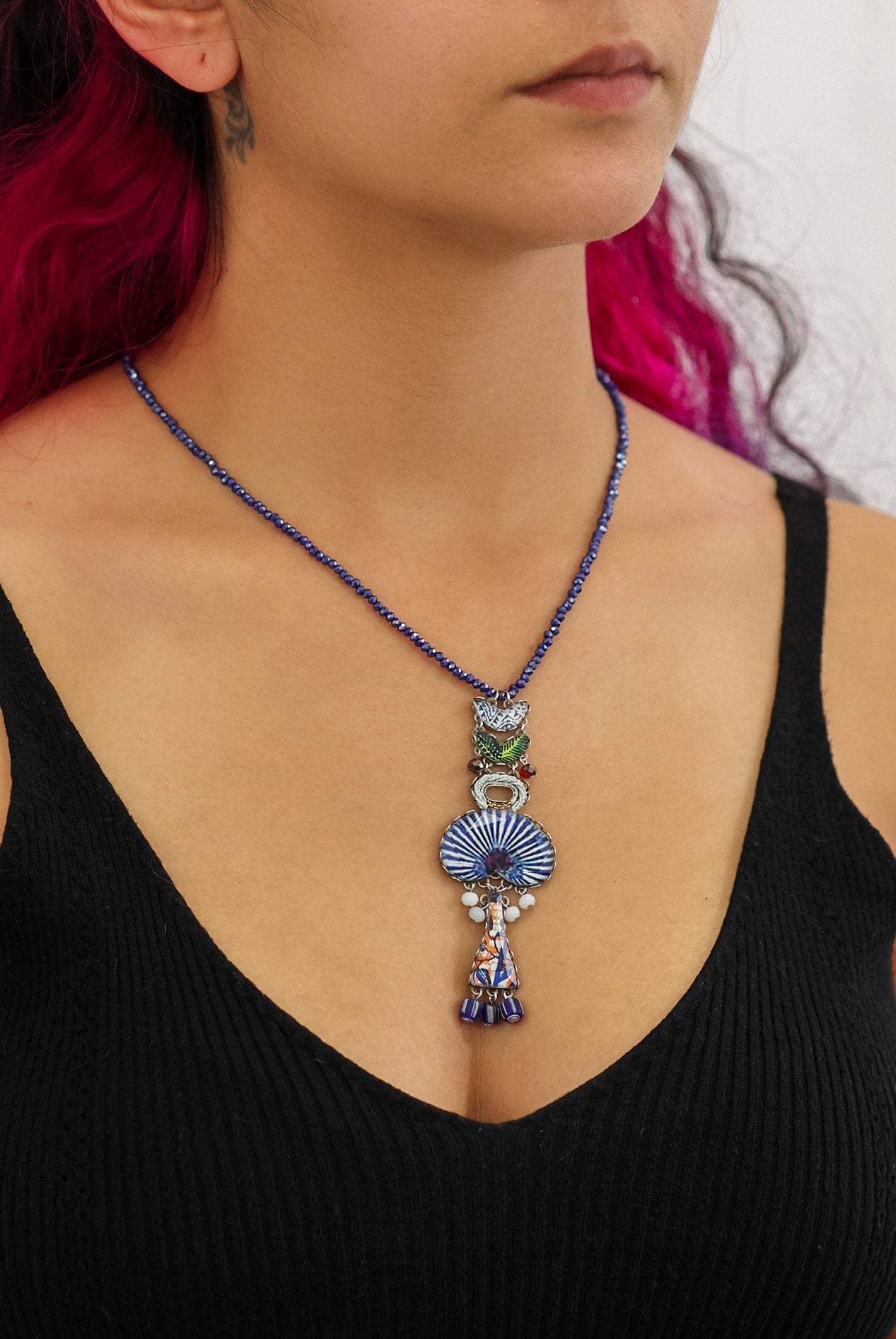 Blue Domes Set, Handmade Glass Necklace, Aegean