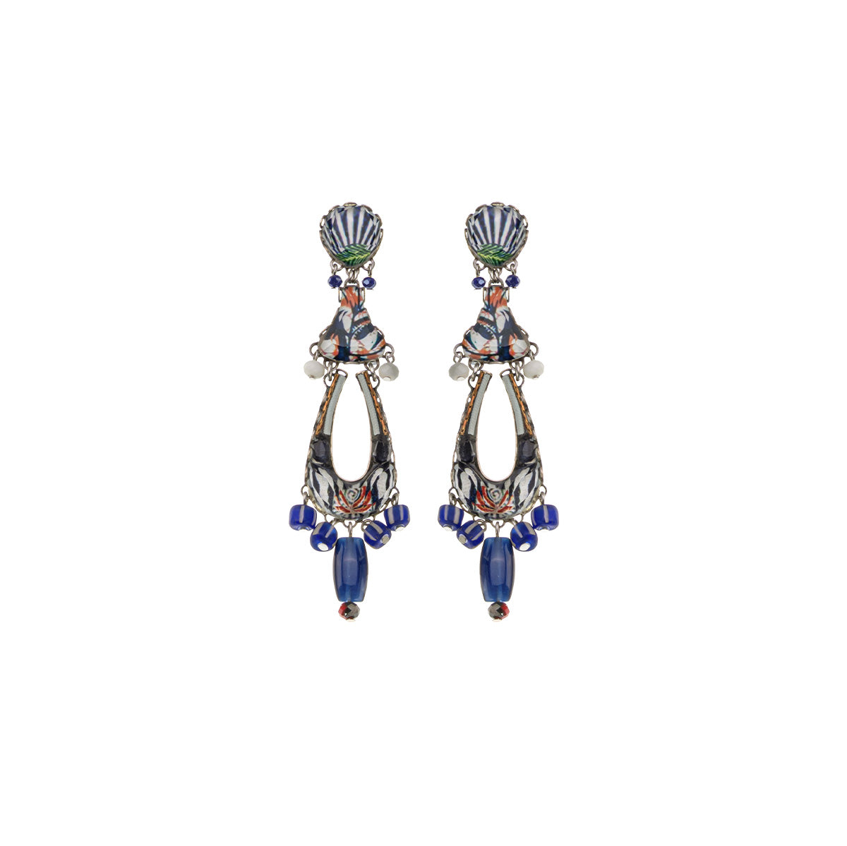 Blue Domes Set, Long Blue Glass Earrings, Athena