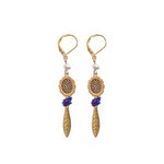 The metallic elements in the jewelry are made from brass plated with silver or gold and include uniquely designed components, chains, and beads. Through techniques such as connecting, gluing, wrapping, and threading, the metals become a dynamic element that adds texture and color to the overall composition of every piece. In addition to their major aesthetic role, the metal parts also provide the framework and foundation for combining other materials.