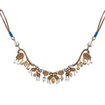 The metallic elements in the jewelry are made from brass plated with silver or gold and include uniquely designed components, chains, and beads. Through techniques such as connecting, gluing, wrapping, and threading, the metals become a dynamic element that adds texture and color to the overall composition of every piece. In addition to their major aesthetic role, the metal parts also provide the framework and foundation for combining other materials.