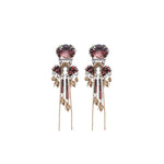 The metallic elements in the jewelry are made from brass plated with silver or gold and include uniquely designed components, chains, and beads. Through techniques such as connecting, gluing, wrapping, and threading, the metals become a dynamic element that adds texture and color to the overall composition of every piece. In addition to their major aesthetic role, the metal parts also provide the framework and foundation for combining other materials.