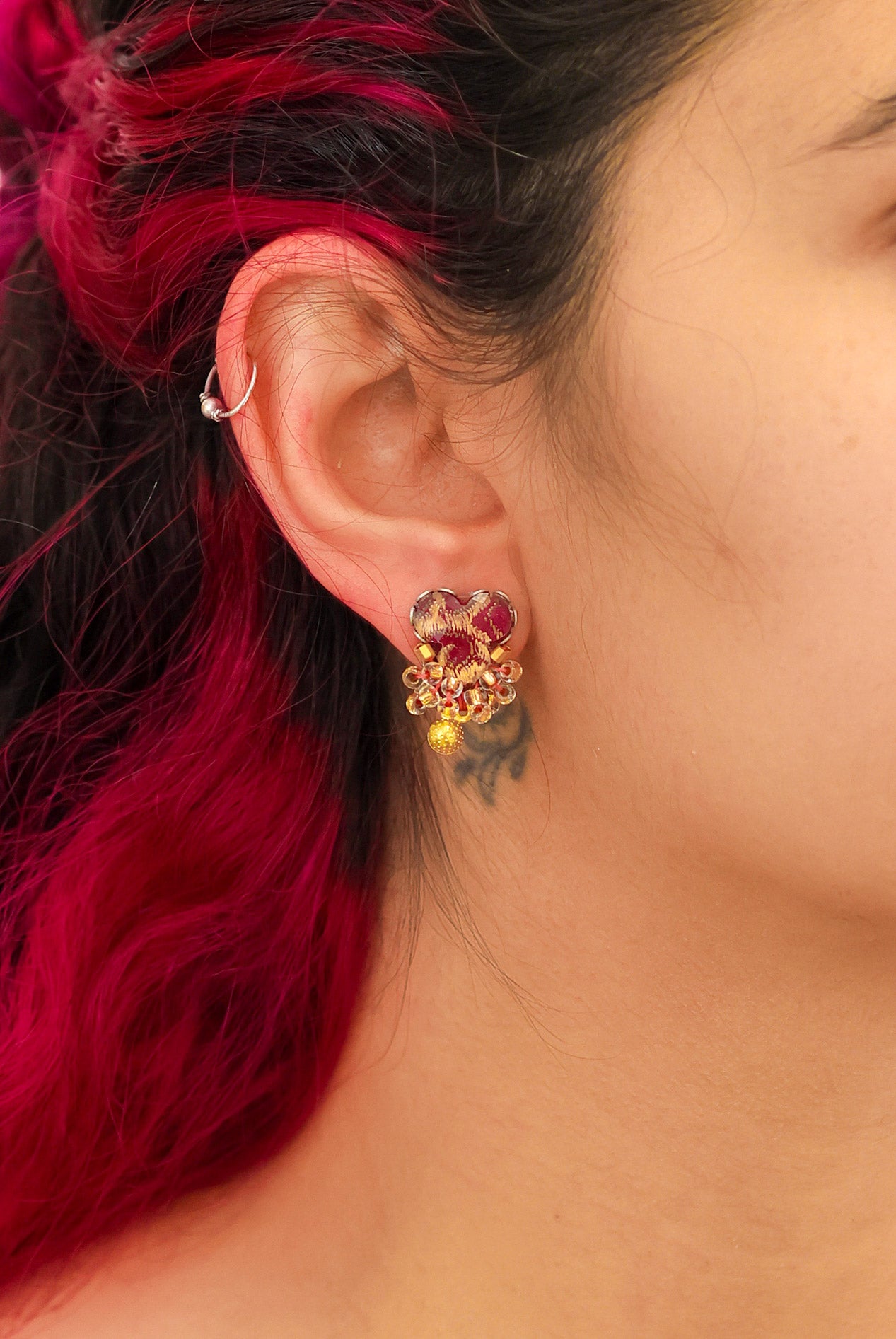 Plum Wine Set, Stud Beaded Earrings, Baika