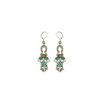 The metallic elements in the jewelry are made from brass plated with silver or gold and include uniquely designed components, chains, and beads. Through techniques such as connecting, gluing, wrapping, and threading, the metals become a dynamic element that adds texture and color to the overall composition of every piece. In addition to their major aesthetic role, the metal parts also provide the framework and foundation for combining other materials.