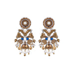 The metallic elements in the jewelry are made from brass plated with silver or gold and include uniquely designed components, chains, and beads. Through techniques such as connecting, gluing, wrapping, and threading, the metals become a dynamic element that adds texture and color to the overall composition of every piece. In addition to their major aesthetic role, the metal parts also provide the framework and foundation for combining other materials.
