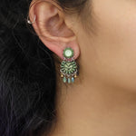 The metallic elements in the jewelry are made from brass plated with silver or gold and include uniquely designed components, chains, and beads. Through techniques such as connecting, gluing, wrapping, and threading, the metals become a dynamic element that adds texture and color to the overall composition of every piece. In addition to their major aesthetic role, the metal parts also provide the framework and foundation for combining other materials.