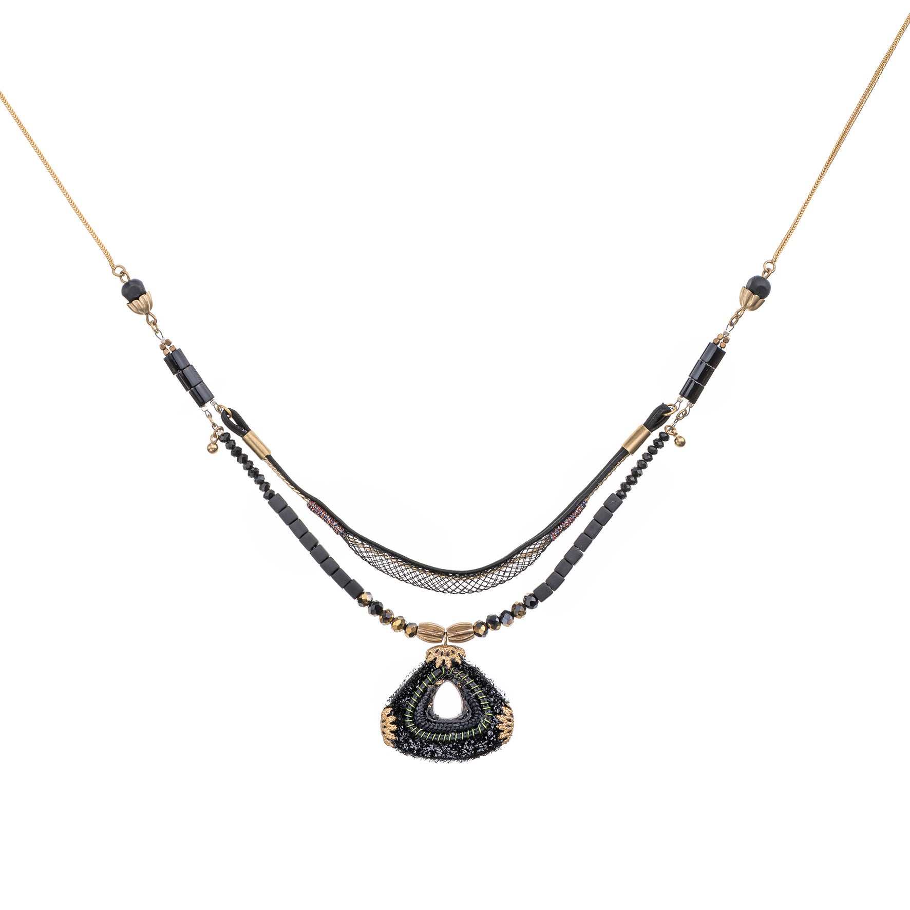 The metallic elements in the jewelry are made from brass plated with silver or gold and include uniquely designed components, chains, and beads. Through techniques such as connecting, gluing, wrapping, and threading, the metals become a dynamic element that adds texture and color to the overall composition of every piece. In addition to their major aesthetic role, the metal parts also provide the framework and foundation for combining other materials.