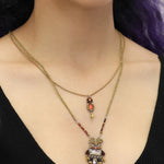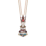 The metallic elements in the jewelry are made from brass plated with silver or gold and include uniquely designed components, chains, and beads. Through techniques such as connecting, gluing, wrapping, and threading, the metals become a dynamic element that adds texture and color to the overall composition of every piece. In addition to their major aesthetic role, the metal parts also provide the framework and foundation for combining other materials.
