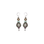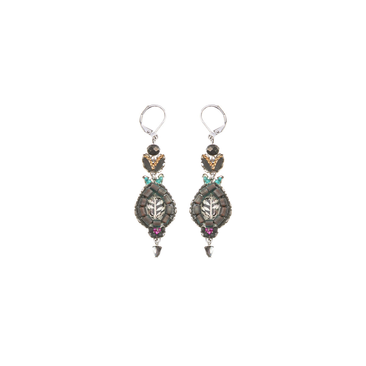 The metallic elements in the jewelry are made from brass plated with silver or gold and include uniquely designed components, chains, and beads. Through techniques such as connecting, gluing, wrapping, and threading, the metals become a dynamic element that adds texture and color to the overall composition of every piece. In addition to their major aesthetic role, the metal parts also provide the framework and foundation for combining other materials.