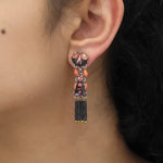 The metallic elements in the jewelry are made from brass plated with silver or gold and include uniquely designed components, chains, and beads. Through techniques such as connecting, gluing, wrapping, and threading, the metals become a dynamic element that adds texture and color to the overall composition of every piece. In addition to their major aesthetic role, the metal parts also provide the framework and foundation for combining other materials.