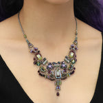 The metallic elements in the jewelry are made from brass plated with silver or gold and include uniquely designed components, chains, and beads. Through techniques such as connecting, gluing, wrapping, and threading, the metals become a dynamic element that adds texture and color to the overall composition of every piece. In addition to their major aesthetic role, the metal parts also provide the framework and foundation for combining other materials.
