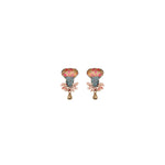 The metallic elements in the jewelry are made from brass plated with silver or gold and include uniquely designed components, chains, and beads. Through techniques such as connecting, gluing, wrapping, and threading, the metals become a dynamic element that adds texture and color to the overall composition of every piece. In addition to their major aesthetic role, the metal parts also provide the framework and foundation for combining other materials.